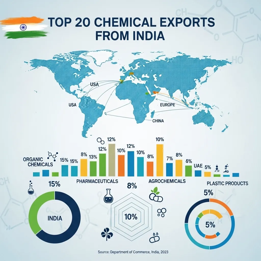 Chemical Weekly of June 3, 2025, along with the rest of the exports from India, also lists and ranks the 20 most chemical products of India with theirworld significance exports and potential for growth.