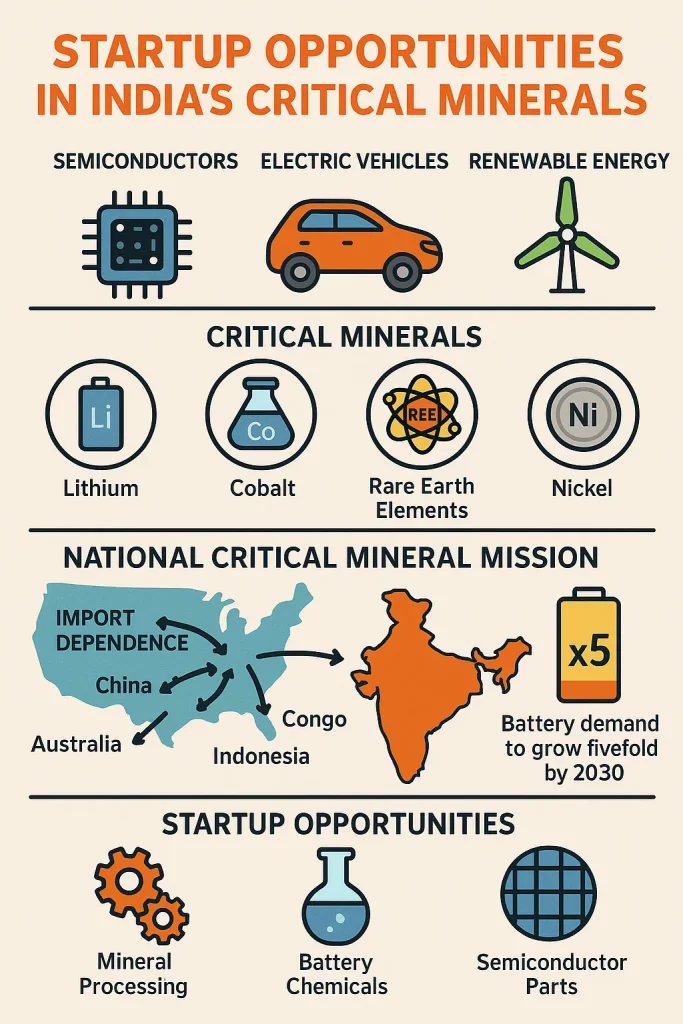 Startup Opportunities: India is predicted to excel in futuristic industries like semiconductor, electric vehicles, and renewable energy and become a global leader in these fields. The industry relies on certain specialized parts called critical minerals and chemicals.