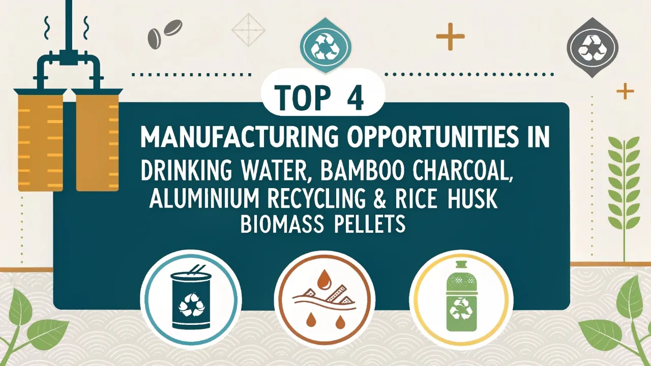 Thus, the business potential in the packaged drinking water, bamboo charcoal, aluminium recycling, and rice husk biomass pellets industries is easy to see.