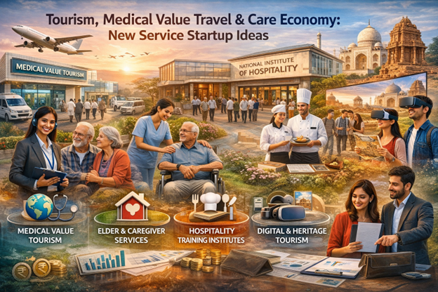 New Service Startup Ideas: Tourism has always been described as a “sunrise sector” in India. What is changing now is the character of tourism itself. It is no longer being fuelled by recreational travel or seasonal traffic. A more enduring, reliable service economy is emerging, anchored on healthcare-centered traveling, long-stay care services, skills-based hospitality institutions, and digitally crafted cultural encounters.